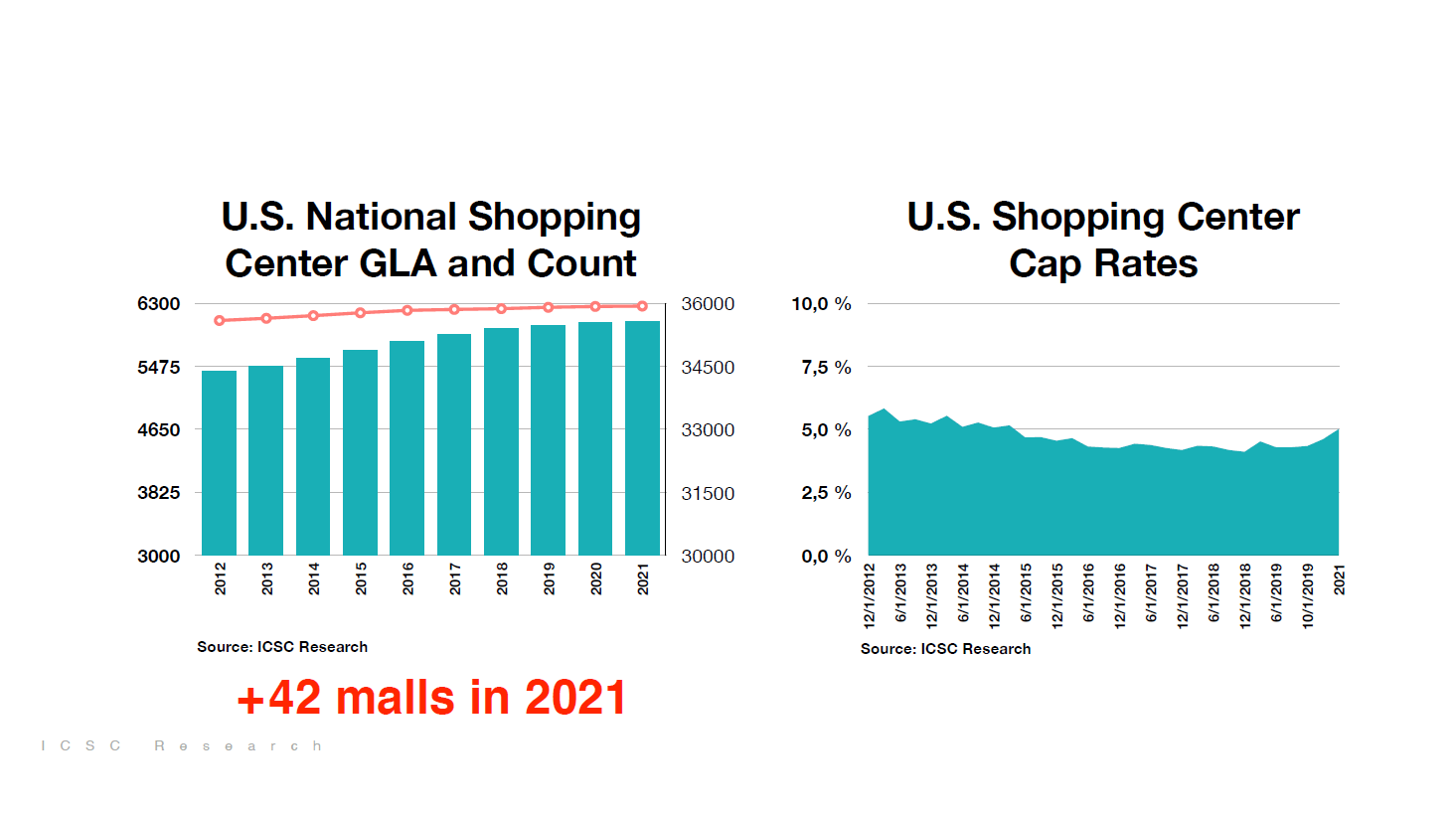 Більше того, у 2021 році кількість торгових центрів у США збільшилась на 42 (з’явилося 1,5 млн кв. м нових площ).