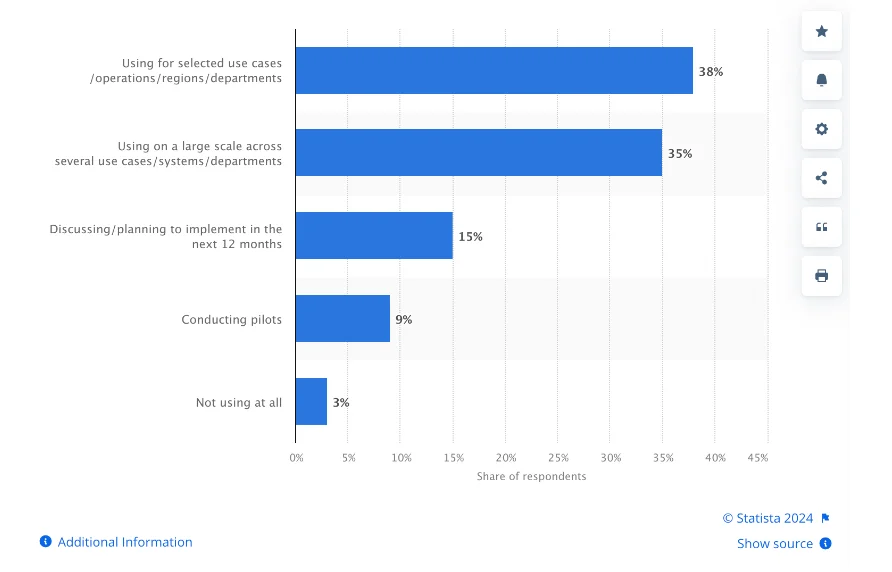 - 35% успішного масштабування цих технологій вказує на позитивний взаємозв'язок між впровадженням і конкретними перевагами впровадження інструменту;
