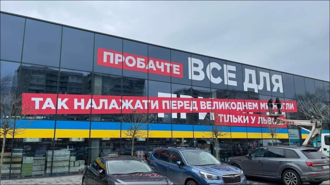 Тепер замість попереднього напису, великими літерами написано: "Пробачте, так налажати перед Великоднем ми могли тільки у Львові".