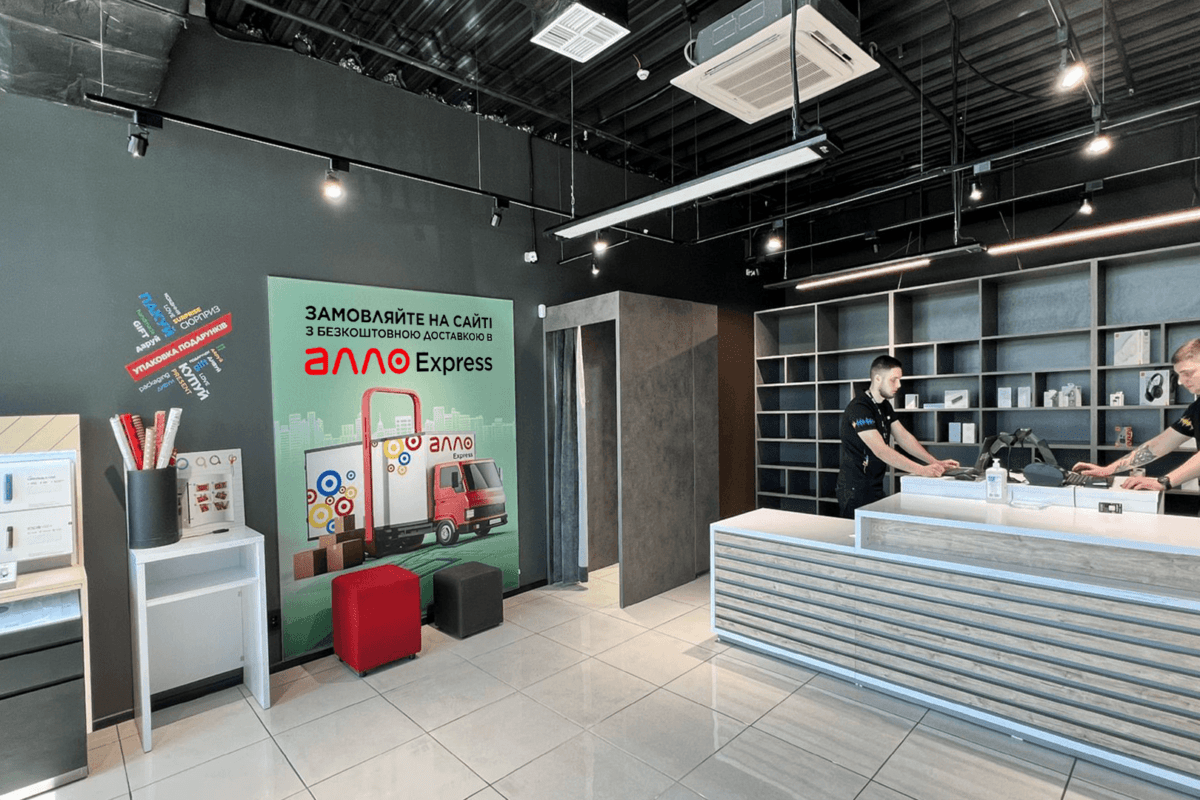 Він передбачає суто точки видачі товарів з сайту allo.ua та продаж найпотрібнішого асортименту аксесуарів.