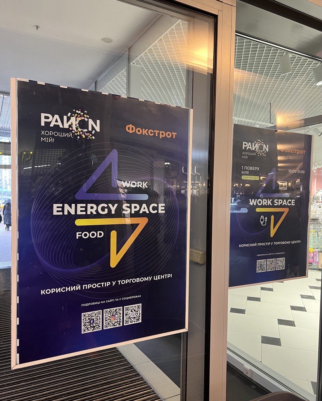 Компанія потурбувалася про своїх клієнтів і облаштувала ENERGY SPACE у ТРК Проспект та ТРЦ РайON у Києві. Відвідувачі торговельних центрів можуть купити смаколики у супермаркетах або ж взяти їжу з собою і безкоштовно підігріти її у мікрохвильовці на Food point, а також скористатися кулером з гарячою та холодною водою. На Work space збільшено кількість робочих місць та розширено зону покриття Wi-Fi. У січні планується запуск Family-просторів із зоною настільних ігор та цікавих ініціатив для всієї сім’ї. Тому гості можуть щодня приходити у ТРЦ, щоб підзарядити ґаджети, попрацювати або ж відпочити та приємно провести час з близькими.