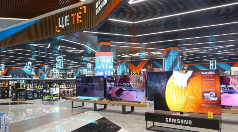 У торговому залі магазину техніки «ЦеТе» з приводу дизайну особливо не розгорнешся — більшу частину приміщення займає техніка. І практично єдиний елемент, з яким можна було б попрацювати дизайнерам, була стеля.