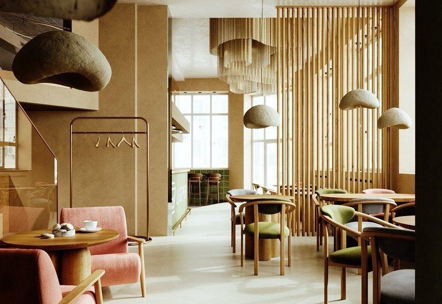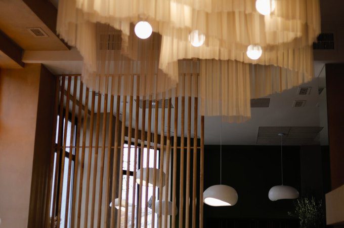 В інтер’єрі багато природних кольорів, дерева, незвичного освітлення, що створює скоріше атмосферу ресторану, аніж класичної “чебуречної”.