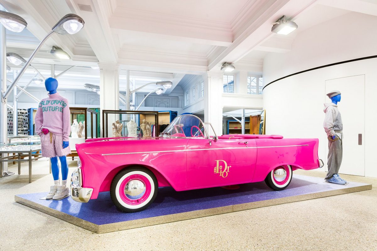 Магазин виконаний у яскравих тонах і запрошує шанувальників брендів поринути у справжню веселку кольорів. В інтер’єрі — телефонна будка, індустріальні стелажі в голлівудському стилі та рожева ретро-машина Барбі.