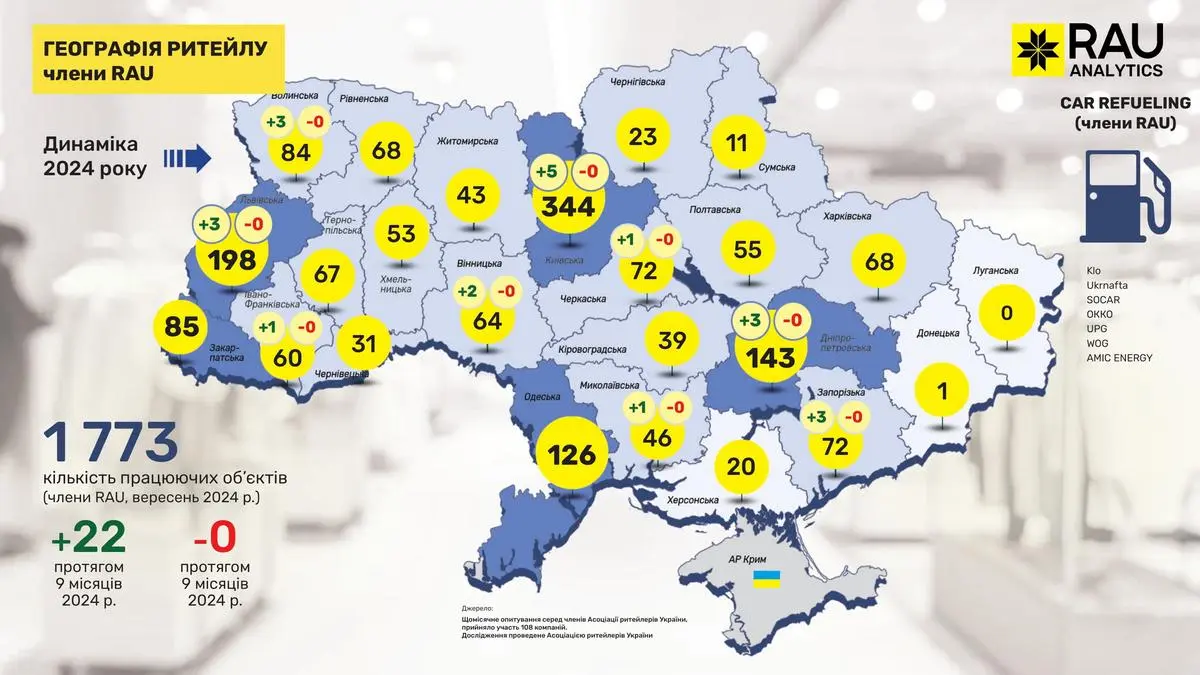 Мережі АЗК в Україні майже зупинили свій розвиток, досягнувши рівня в 1773 АЗК станом на вересень поточного року.