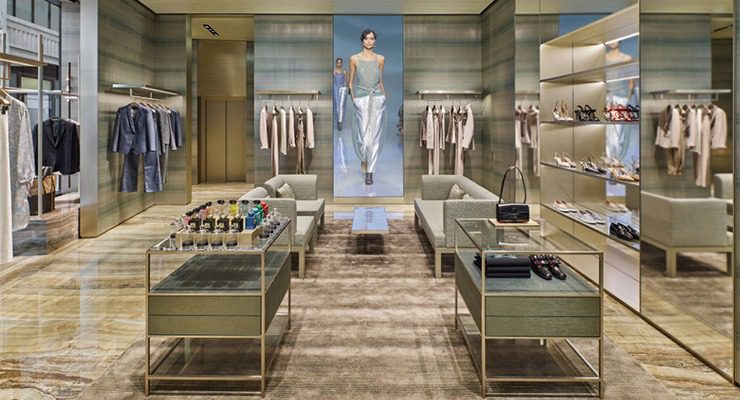 Новий бутік розташований у так званому "золотому кварталі", Armani має площу 774 кв. м і займає три поверхи, які з’єднані гвинтовими сходами з ефектом зеленого мармуру та перилами платинового кольору.