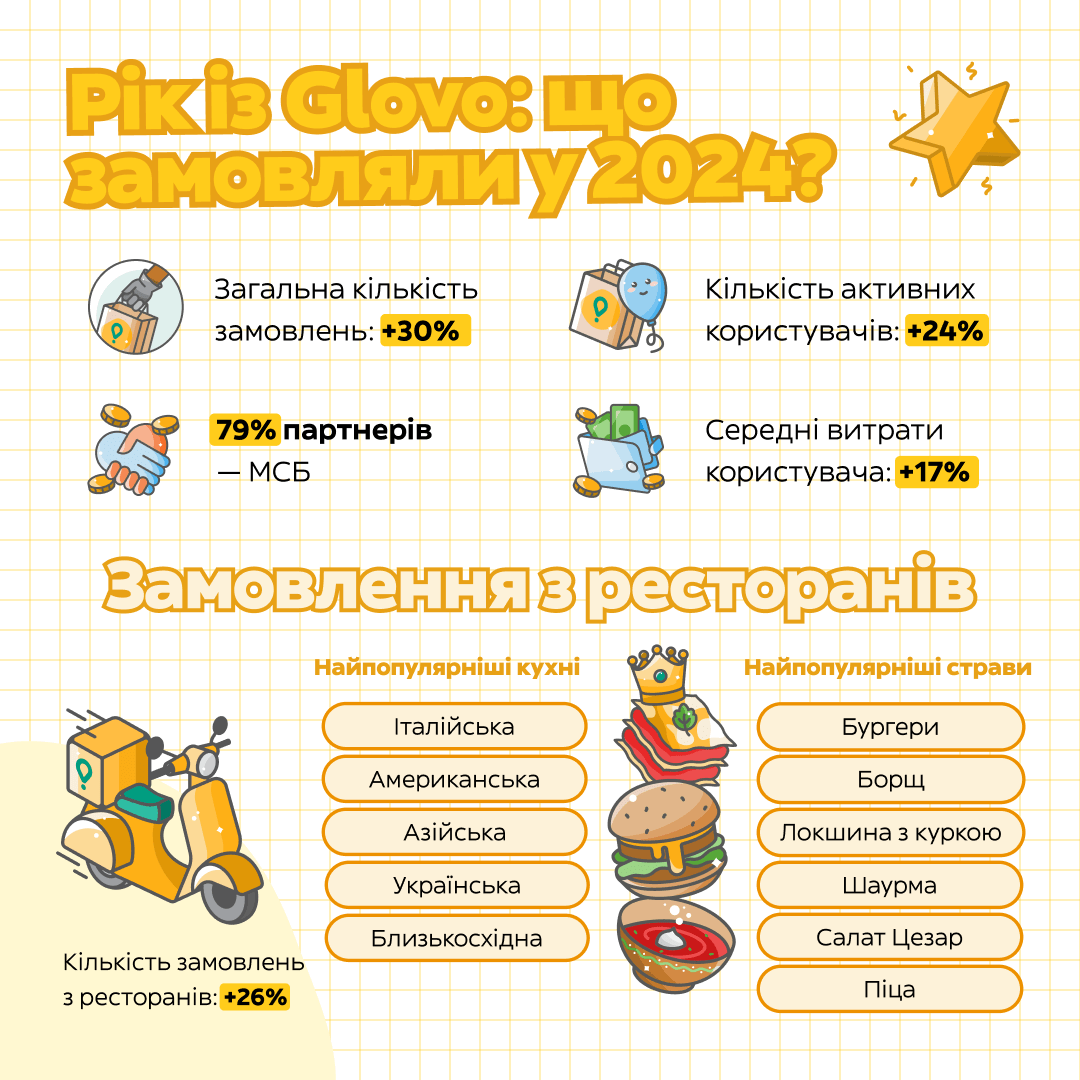 Glovo підбив підсумки 2024-го: що і скільки замовляли українці протягом року