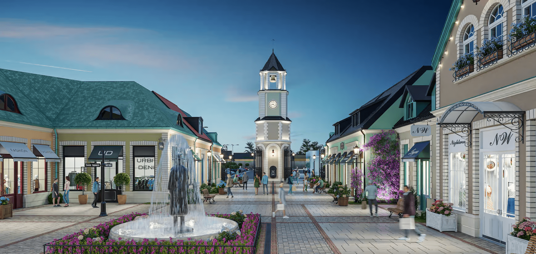 Outlet Village поєднує елементи французької архітектури 16-го століття з мальовничими набережними, фонтанами, кафе та зонами відпочинку. Це створить стильне та комфортне середовище для життя. Комплекс об’єднає магазини найкращих брендів, пропонуючи вигідні ціни, а також створить зручні умови для сімейного дозвілля. Проєкт буде обслуговувати понад два мільйони жителів та залучатиме до восьми мільйонів відвідувачів щорічно.