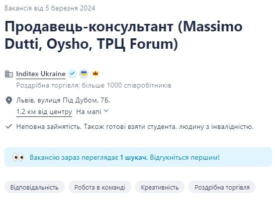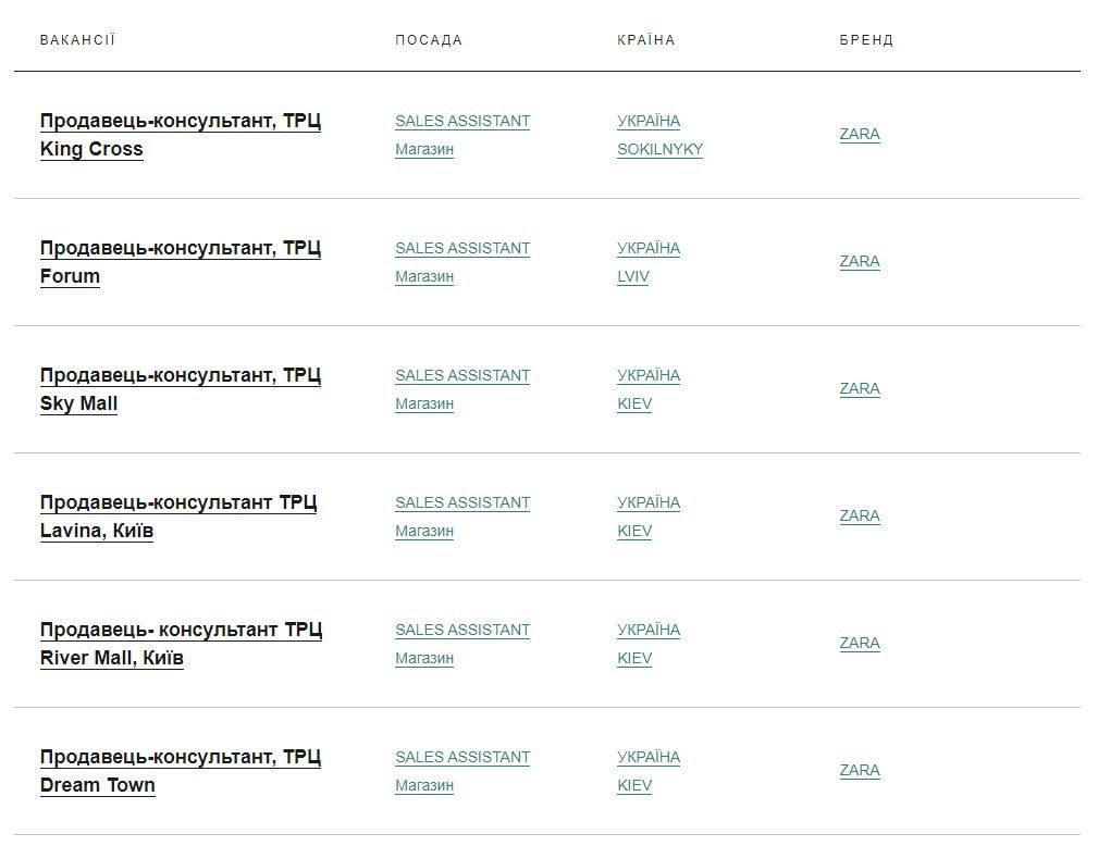 Вакансії оприлюднені не лише на українських порталах з пошуку роботи, а й на офіційному сайті Inditex: