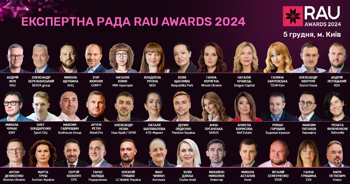 5 грудня 2024 року в Києві відбудеться церемонія нагородження RAU Awards 2024 - найпрестижніша церемонія нагородження кращих у сфері ритейлу та девелопменту в Україні.