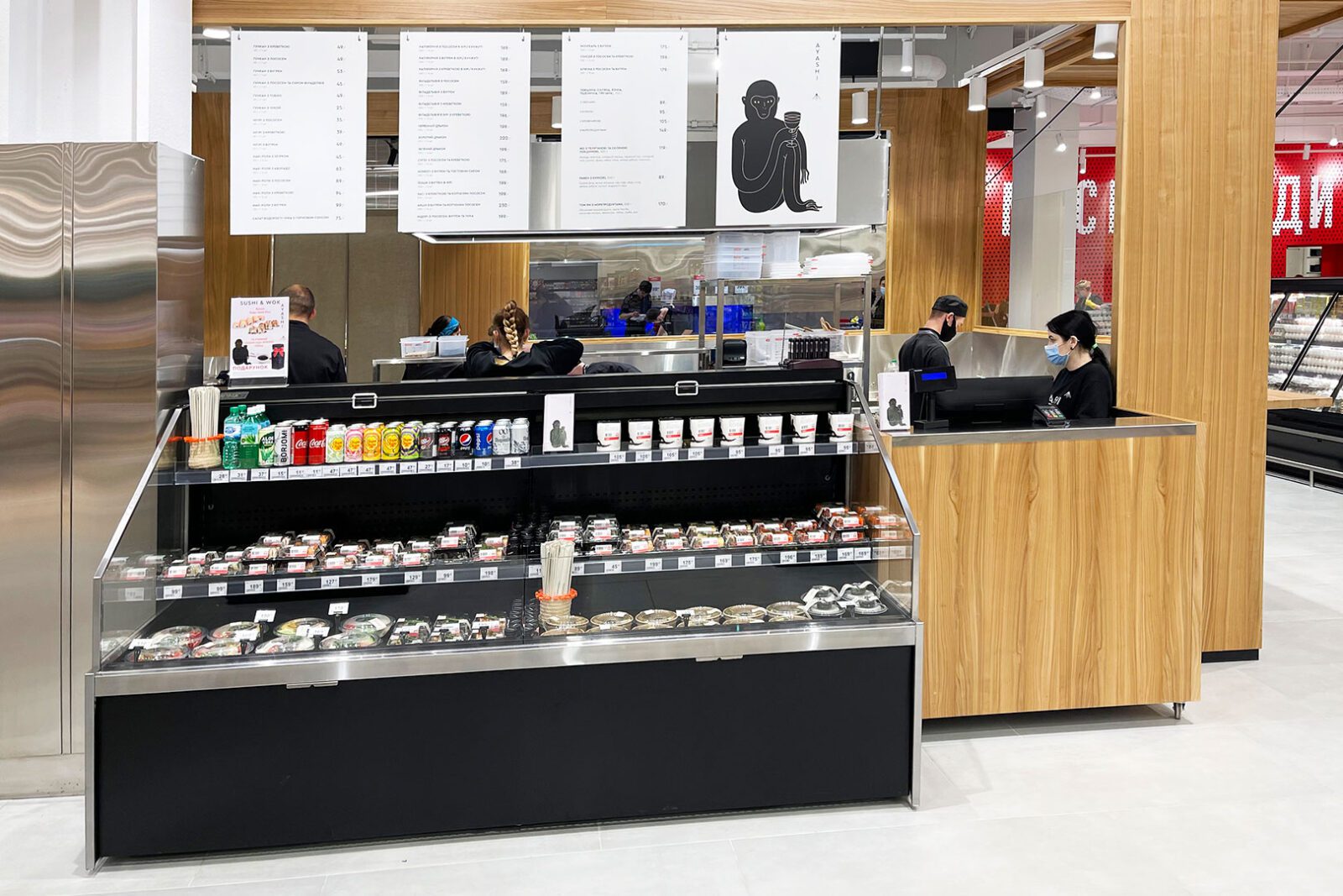 Для всіх бажаючих перекусити у торговому залі супермаркету облаштований фуд-корт із відкритою кухнею, де можна спостерігати за процесом приготування замовлених страв. Всього їх в асортименті понад 150. Неподалік розташований відділ готових страв, кондитерських виробів і кулінарії, представлений у вигляді острова вітрин.