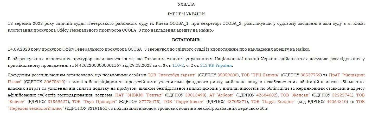 Національна поліція розслідує кримінальне провадження про ухилення від сплати податків компаніями "Інвестбуд гарант", "ТРЦ Лавина" та "Мандарин Плаза".