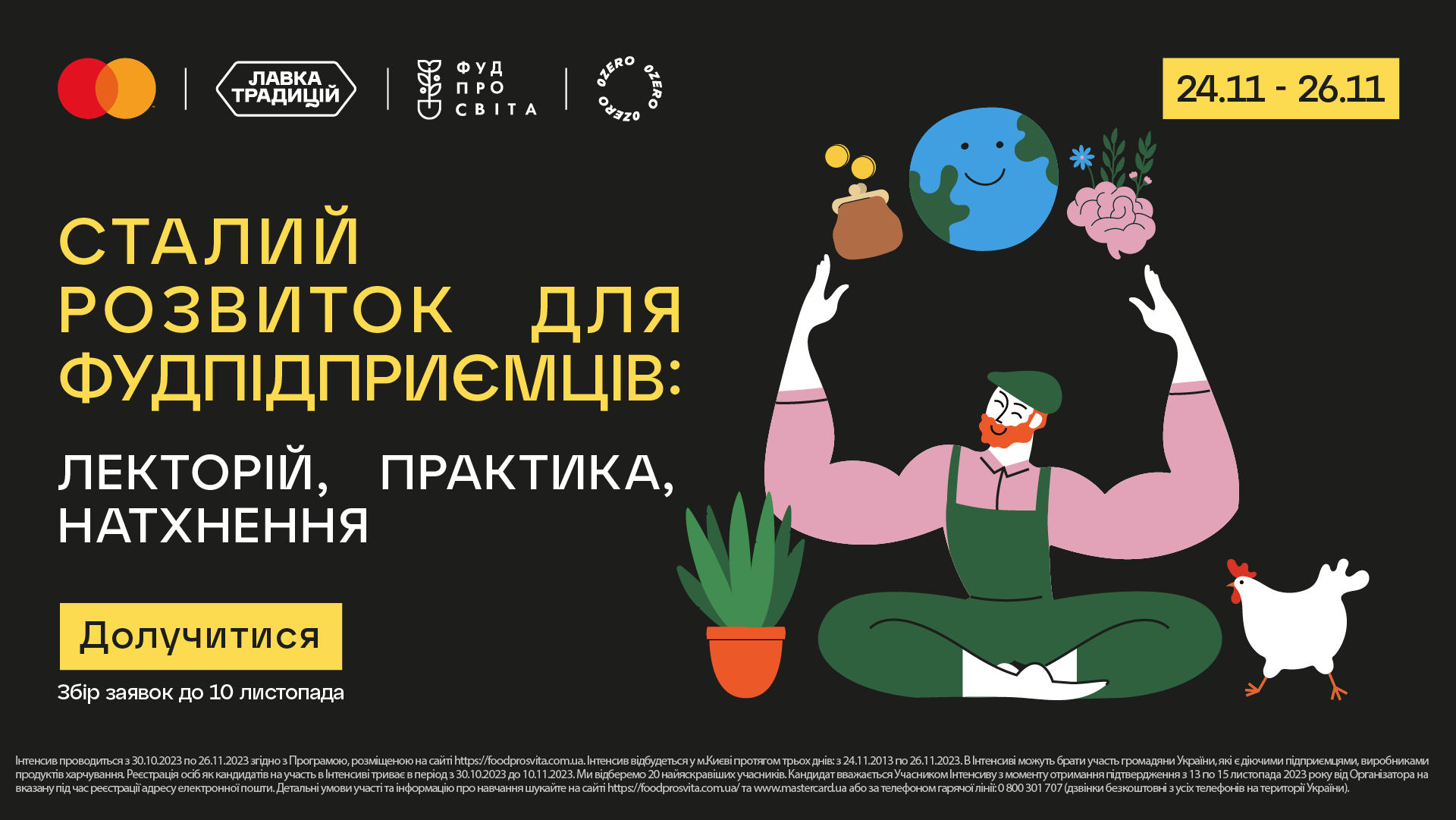 Також заплановано екскурсію до одного з українських бізнесів, щоб наочно побачити створення усвідомленого фудпідприємства.