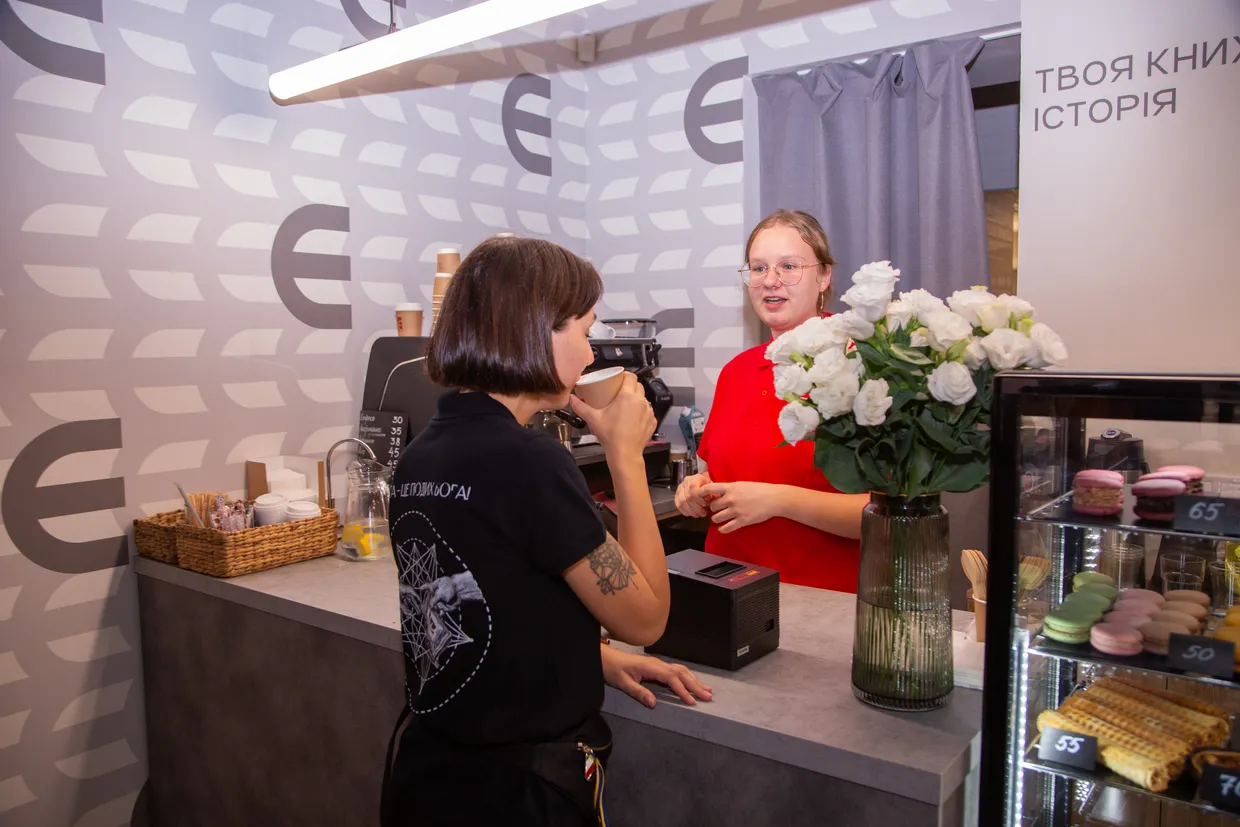 В магазині обладнали місця для відпочинку і читання, є окрема зона з напоями й десертами.