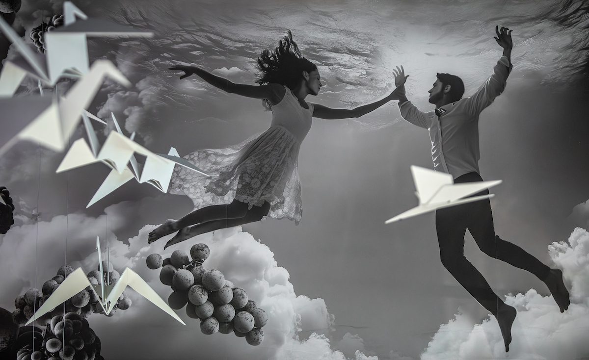 Стелю прикрасили зоряним небом, з якого падає людина, щоб передати знайоме багатьом відчуття падіння уві сні.