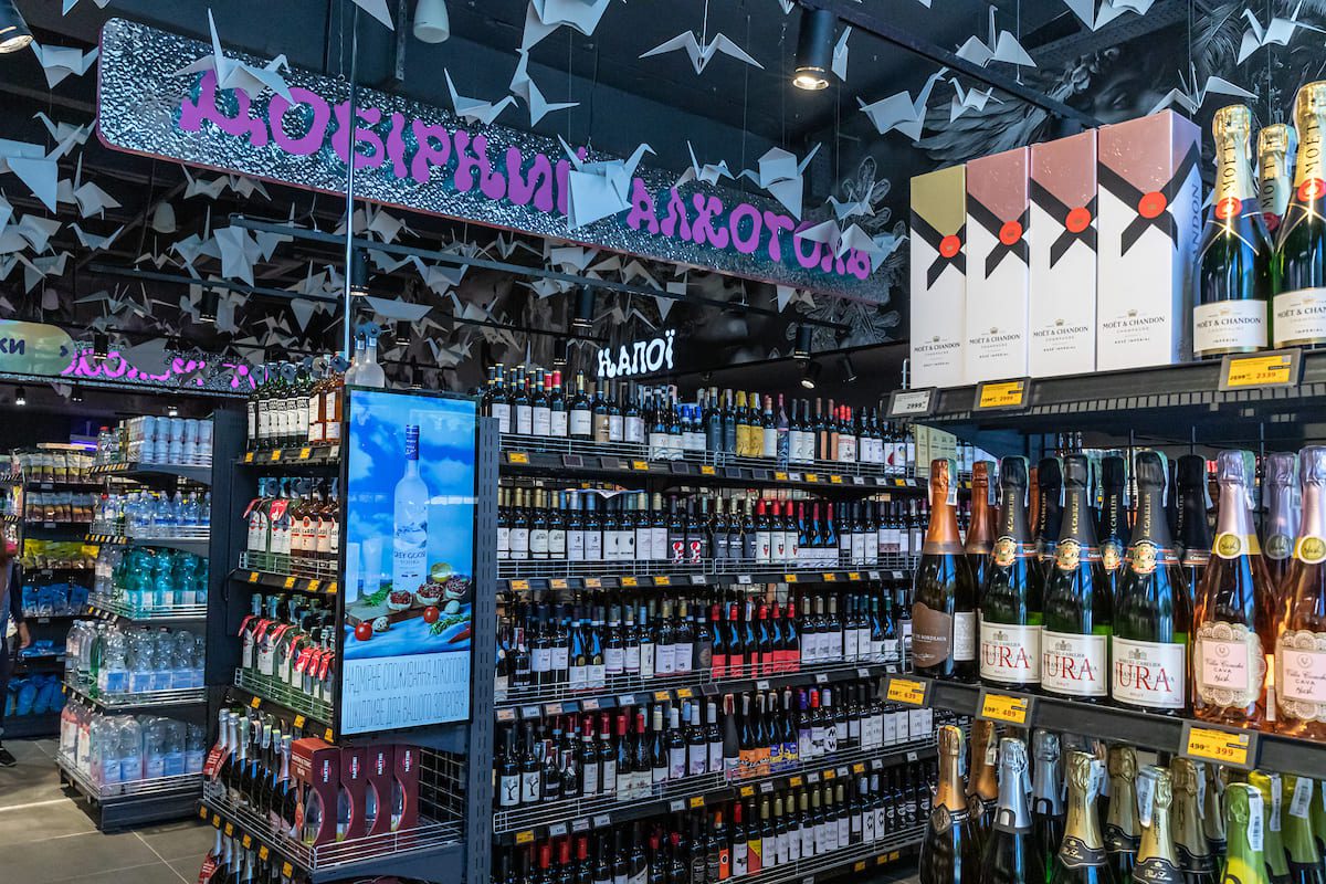 Зону алкоголю оформлено в чорно-білій палітрі, для тих, хто не бачить кольорові сни.