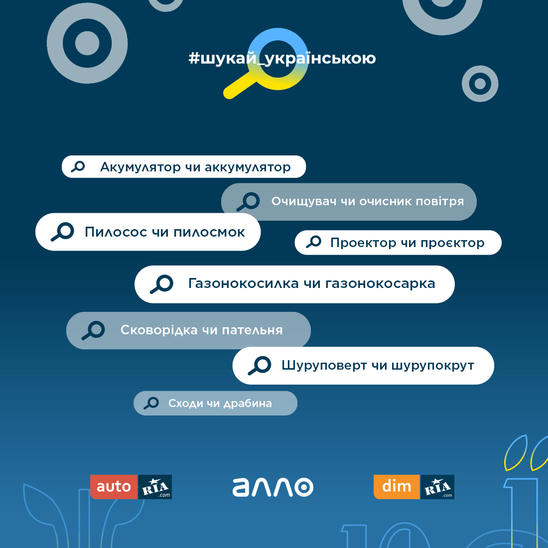 Маркетплейси АЛЛО, AUTO.RIA та DIM.RIA об’єдналися для популяризації україномовного пошуку в інтернеті та запустили освітню кампанію #шукай_українською.