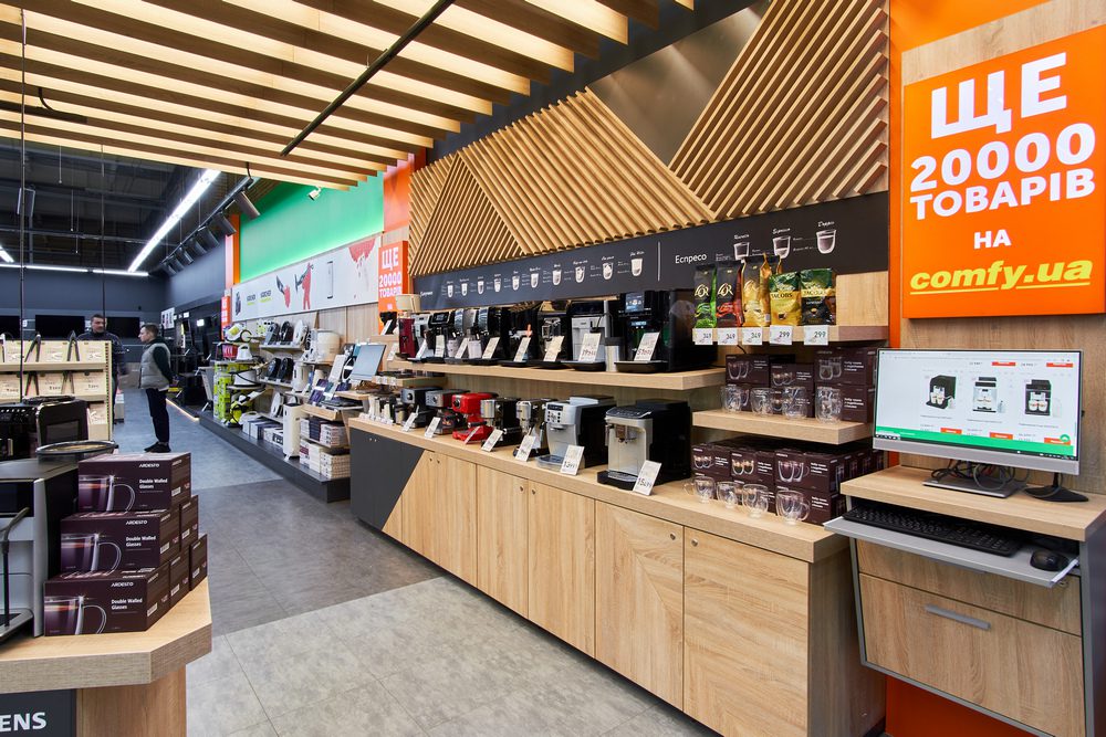 Новий магазин площею в 1000 кв. м повністю відповідає сучасному оформленню та формату мережі Comfy: