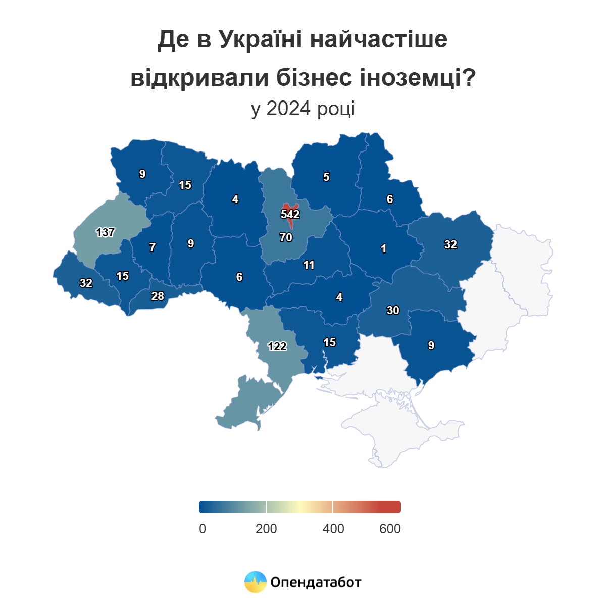 Найбільша кількість нових бізнесів з іноземним капіталом була зареєстрована у Києві, Львівській та Одеській областях. Громадяни Туреччини, Польщі та США найчастіше відкривали бізнес в Україні минулоріч, згідно з даними Єдиного державного реєстру.