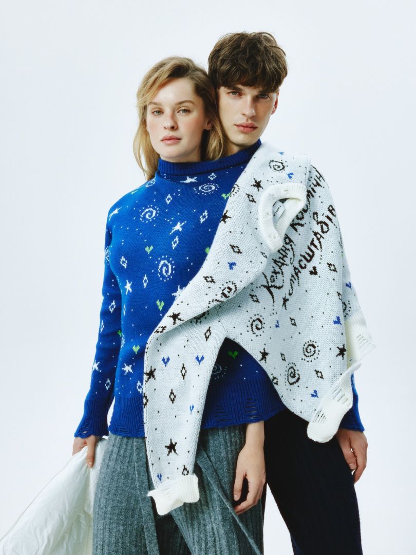 У колекцію увійшли п’ять варіацій светрів, шапок біні в стилі виконавця та великих в’язаних шарфів.
