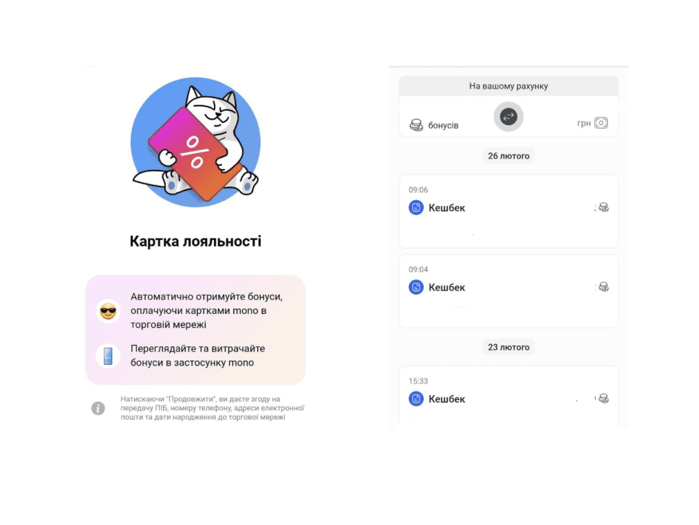 Синхронізувати картку лояльності та застосунок можна за випискою або через QR-код, якщо такий варіант пропонує ритейлер.