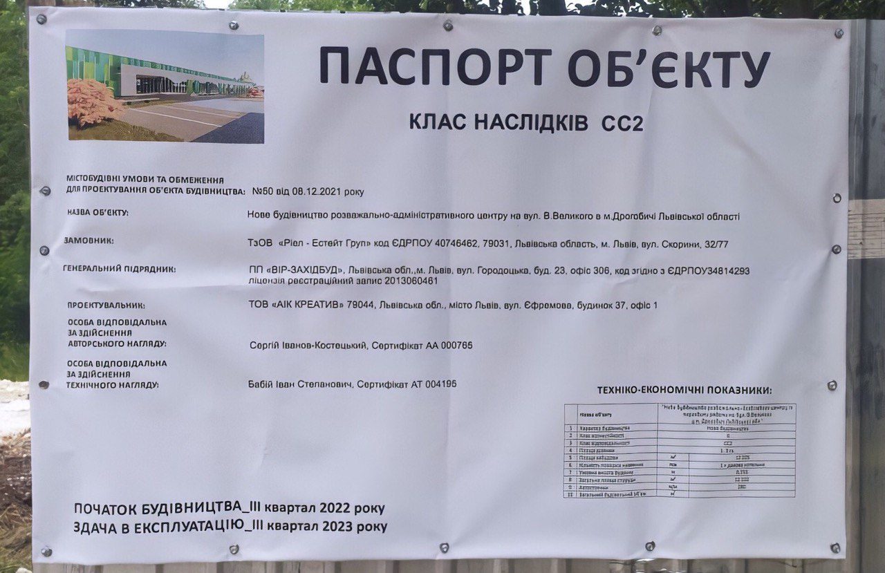 Роботи з будівництва адміністративно-розважального комплексу у Дрогобичі мають бути виконані протягом 2022-2023 років.