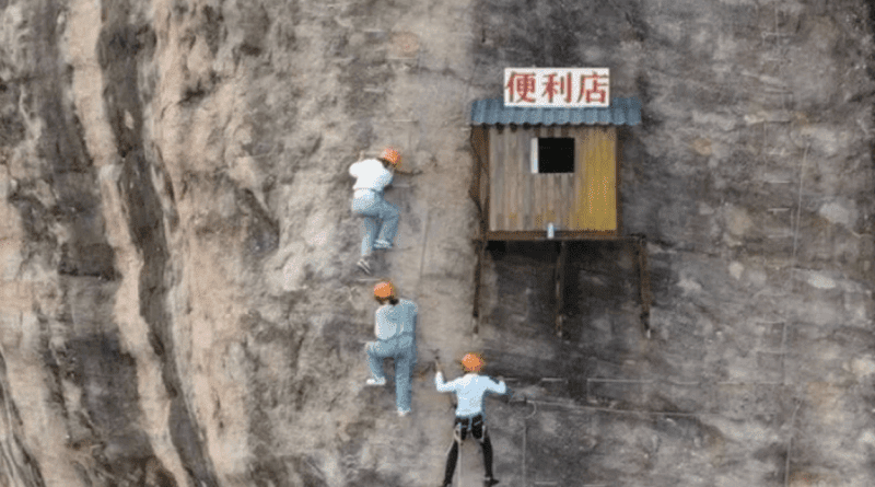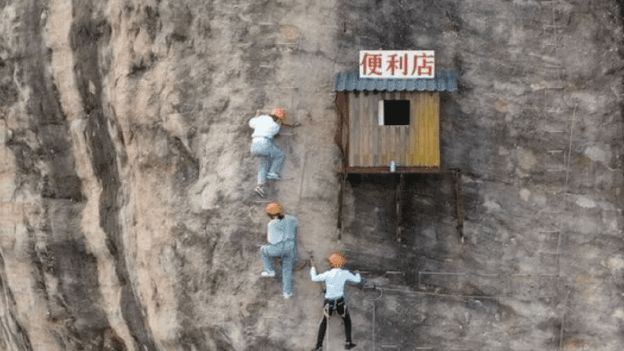 У китайській провінції Хунань на висоті 120 метрів на схилі скелі знаходиться магазин, який постачає альпіністів необхідними закусками, прохолодними напоями та продуктами харчування під час їхнього сходження. Працівники поповнюють запаси в магазині за допомогою зіплайнів, щоб запропонувати унікальний досвід покупок, — розповіла користувачка мережі, яка бачила магазин на власні очі.