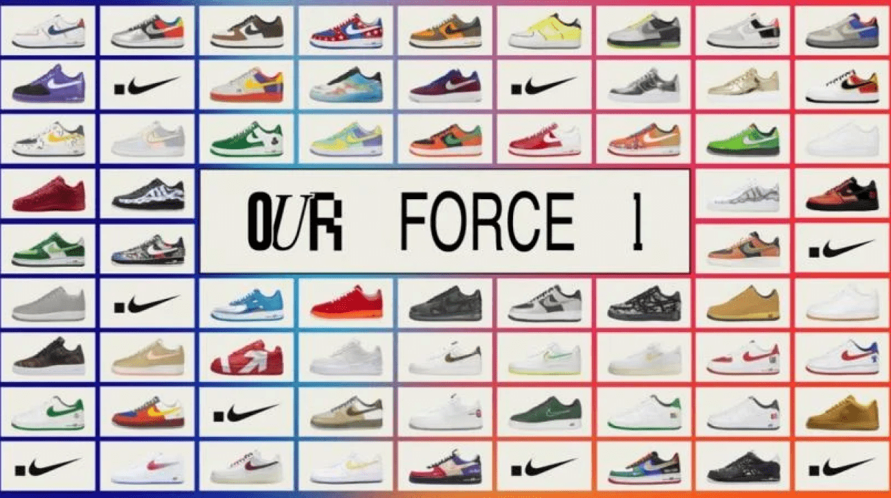 Кожен бокс відкриває різні цифрові версії кросівок Nike Air Force 1, що були випущені ще у 1982 році.