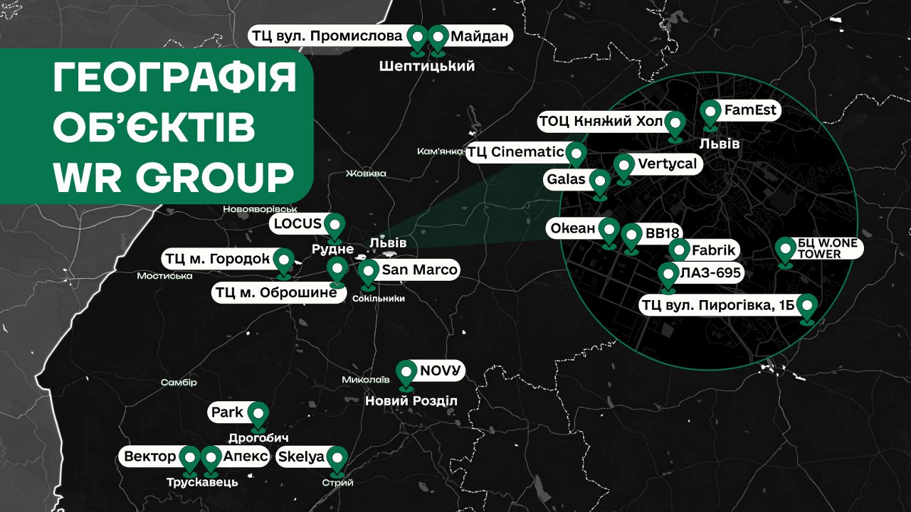 Компанія WR Group — девелопер повного циклу, що спеціалізується на малих ТЦ. За останні роки команда реалізувала 13 проєктів загальною площею понад 125 000 м кв. Ще 10 об’єктів, сумарною площею 125 000 м кв, наразі в роботі.