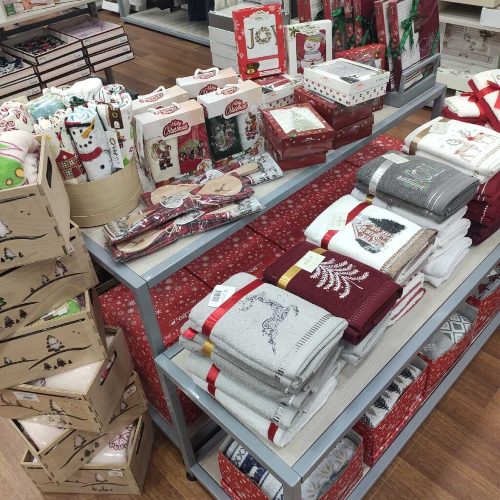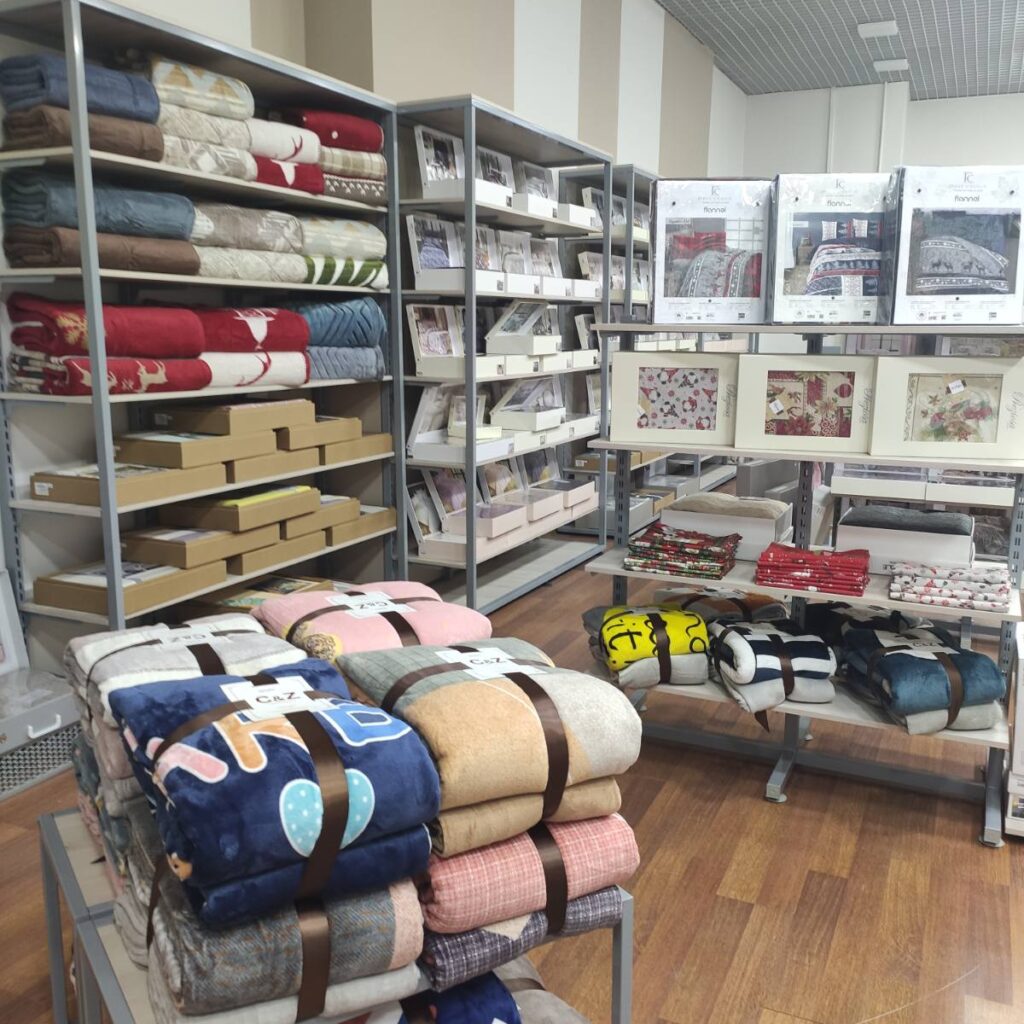 Магазин пропонує широкий асортимент домашнього текстилю: постільної білизни, рушників, халатів, піжам, скатертин, покривал, подушок, ковдр, пледів та подарункових наборів на всі випадки життя.