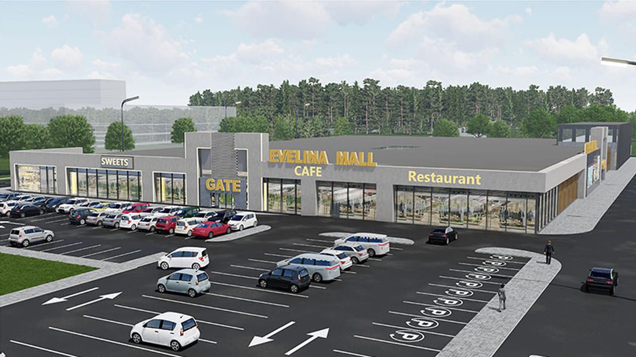 В EVELINA MALL планують розмістити магазини одягу та взуття, електроніки, аптеку, а також супермаркет. На верхніх рівнях облаштують ресторанний дворик з кафе, фастфудом і зонами для сімейного відпочинку. Також передбачена парковка на 450 місць.