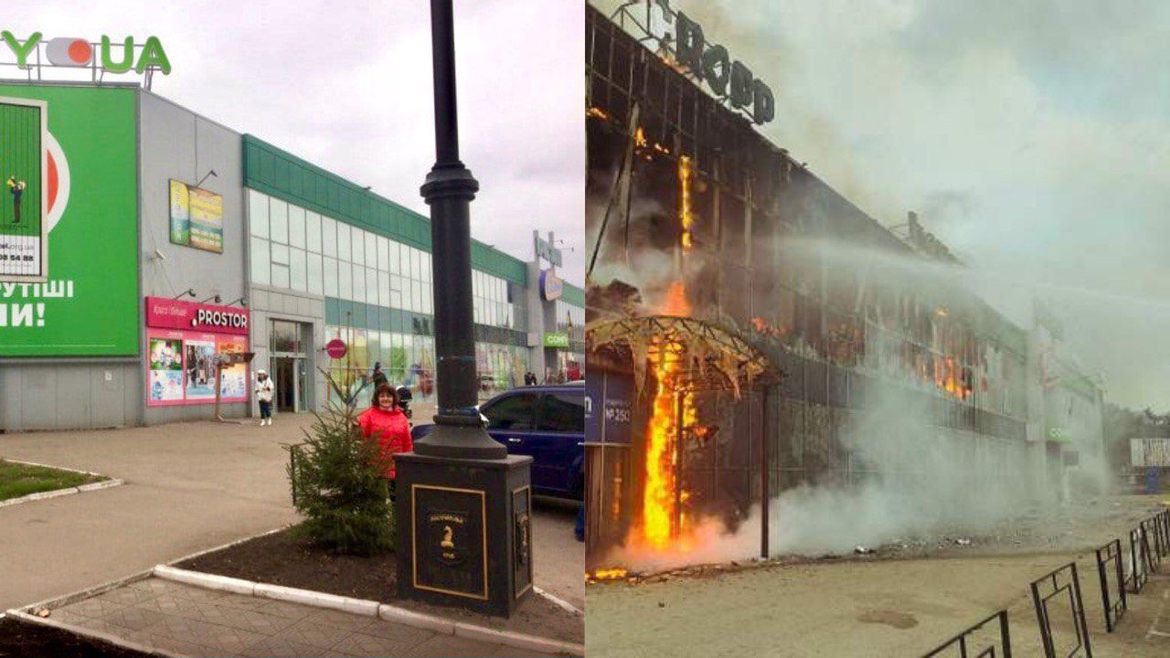 Після обстрілу ТЦ “Кристал”, де розташовані магазини «Сільпо» та Comfy, спалахнула пожежа.