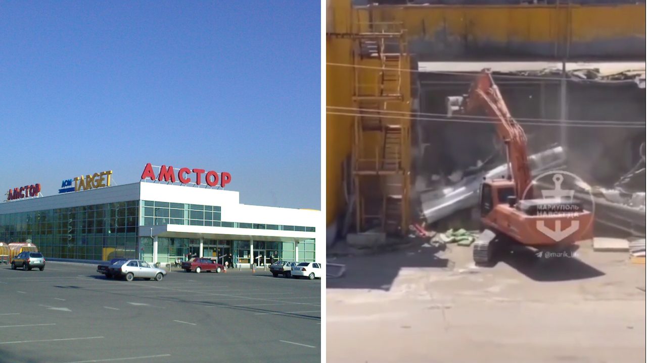 Окупанти остаточно зносять зруйнований раніше ТЦ “Амстор” у Маріуполі (відео)