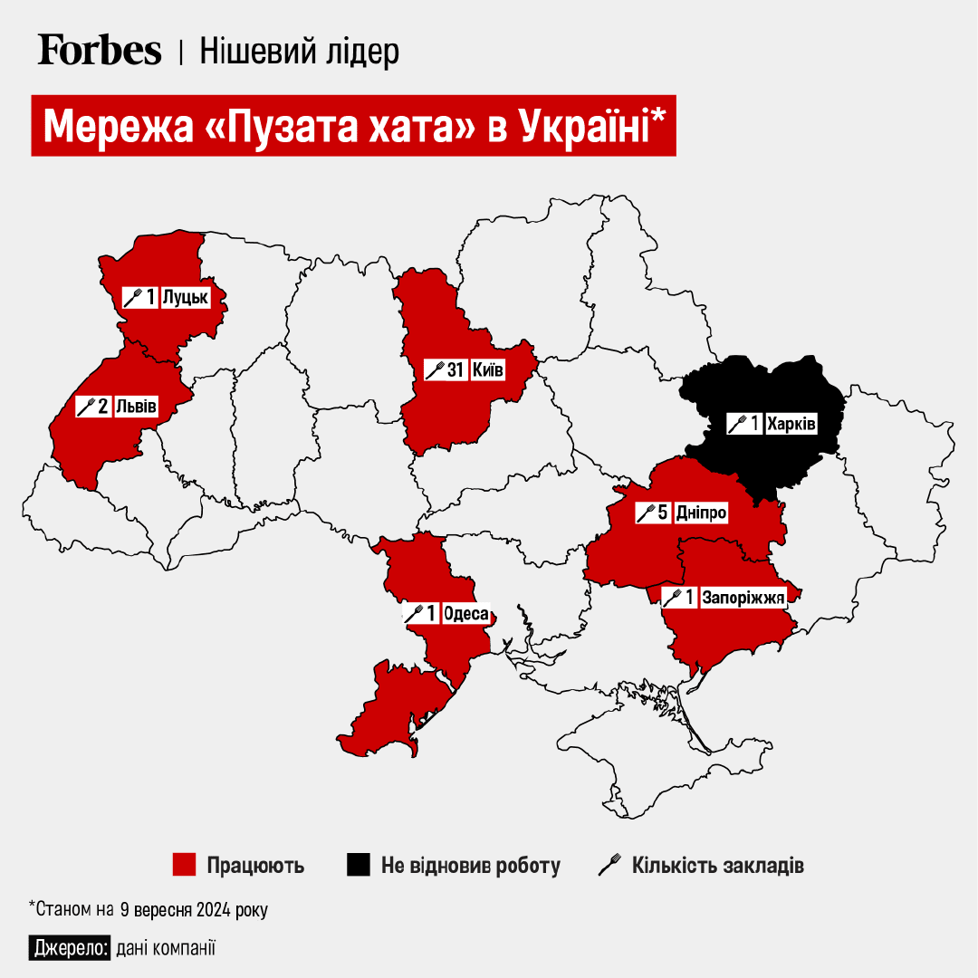 Також за останній час зросли нові конкуренти мережі. Раніше "Пузата Хата" конкурувала з такими закладами, як "Домашня кухня", "Гарбузик" та "Глечик", які повністю або частково згорнули роботу.