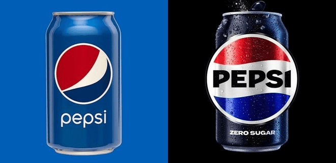 У дизайн повернули ключовий елемент - напис Pepsi всередині кола на білій смузі. Чорний колір використано враховуючи "постійний фокус бренду на Pepsi Zero Sugar" і це ще раз підкреслює прихильність бренду до Pepsi Zero Sugar у майбутньому.