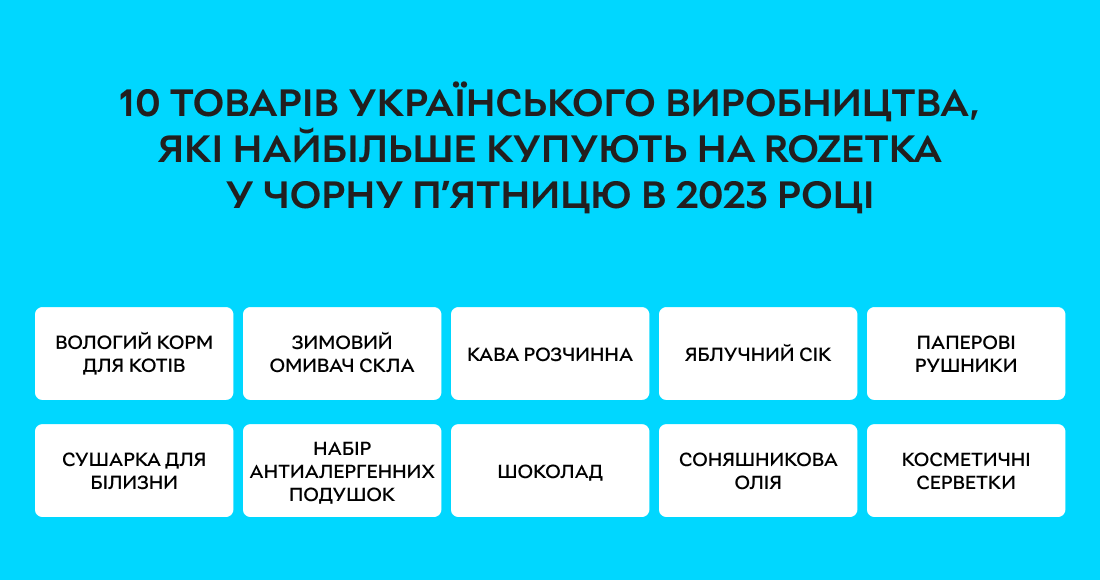 У перші дні Чорної п'ятниці покупці придбали на сайті онлайн-ритейлерa вдвічі більше українських товарів, ніж минулого року. Це позитивна тенденція, адже для нас важливо підсилювати українську економіку й ми раді, що покупці підтримують вітчизняних виробників. Щоб у сезон Чорної пʼятниці всі могли так само швидко й комфортно отримати замовлені товари, на певні категорії діє безплатне кур'єрське доставлення до дверей на будь-який поверх, навіть без ліфта. Також у період знижок ми на 50% збільшили кількість курʼєрів, працівників на складах та в точках видачі, — зазначає директор з маркетингу Rozetka Євген Образок.