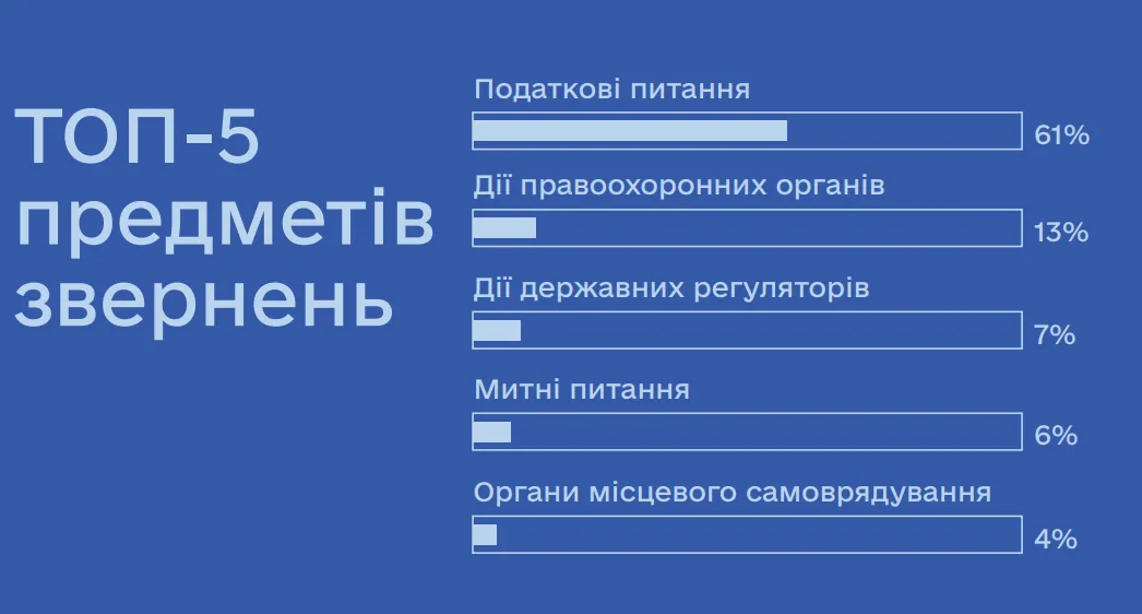 - податкових питань (61% від загальної кількості скарг бізнесу);