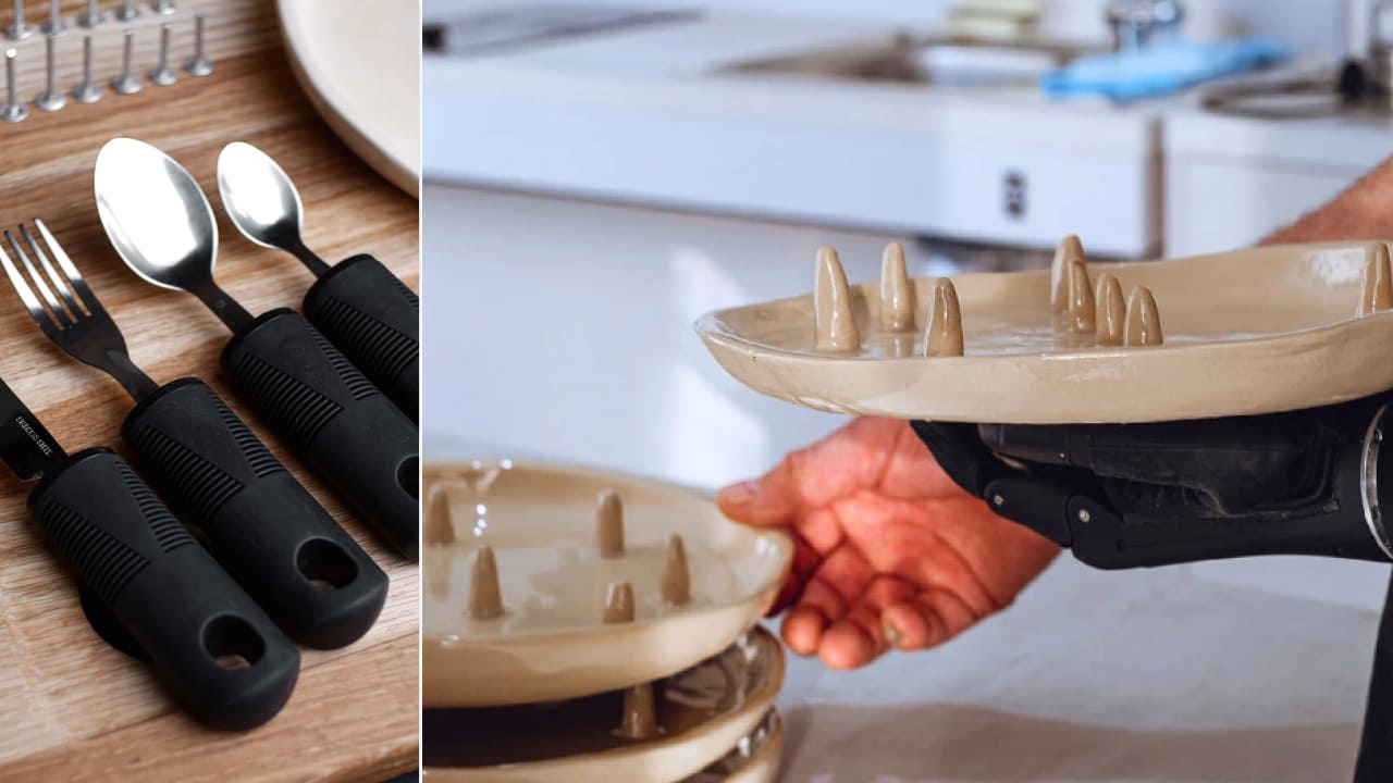 Наприклад, тарілки, якими зручно користуватися однією рукою або one-handed plates, з певними особливостями конструкції:
