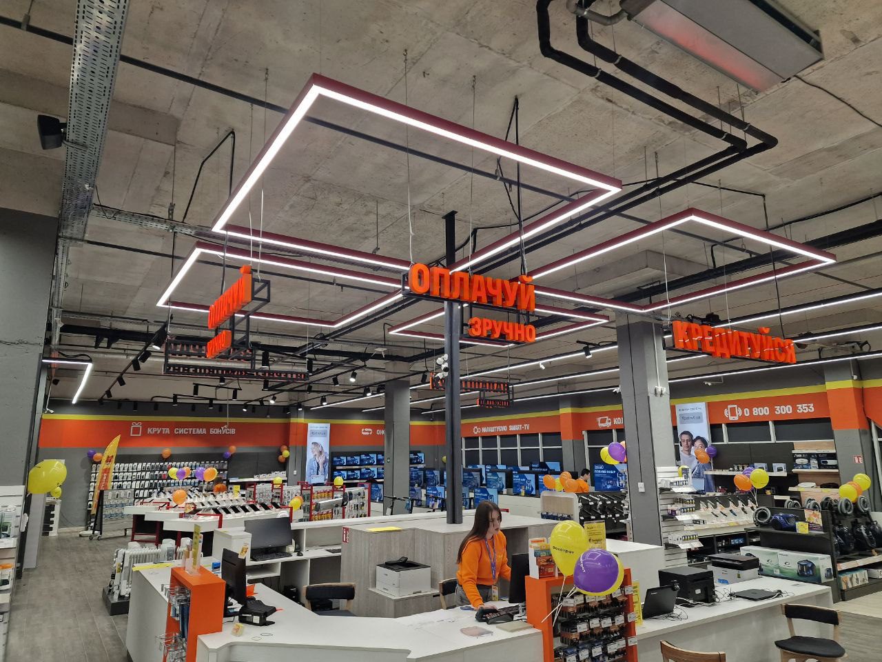 У магазинах представлено стандартну розширену товарну матрицю із інноваційними зонами відомих брендів для тестування товару.