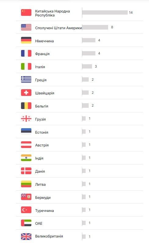 На сьогодні до цього реєстру занесено майже 50 компаній. Найбільше з них із Китаю — 14. На другому місці США — 7 компаній. Усі інші - переважно з країн Європейського Союзу, — сказав Новіков.