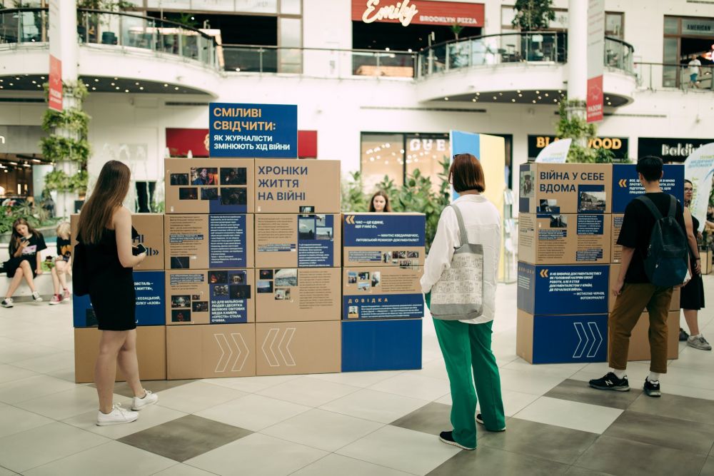 ГО «Львівський медіафорум» спільно з локацією-партнером ТРЦ Victoria Gardens організував виставку «Сміливі свідчити» про важливість роботи журналістів та незалежних редакцій під час війни.