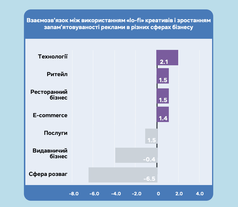 У компанії зазначають, що рівень запам’ятовуваності реклами в кампаніях з низькою вартістю відеопродакшну значно вище, ніж у кампаніях з високою вартістю.