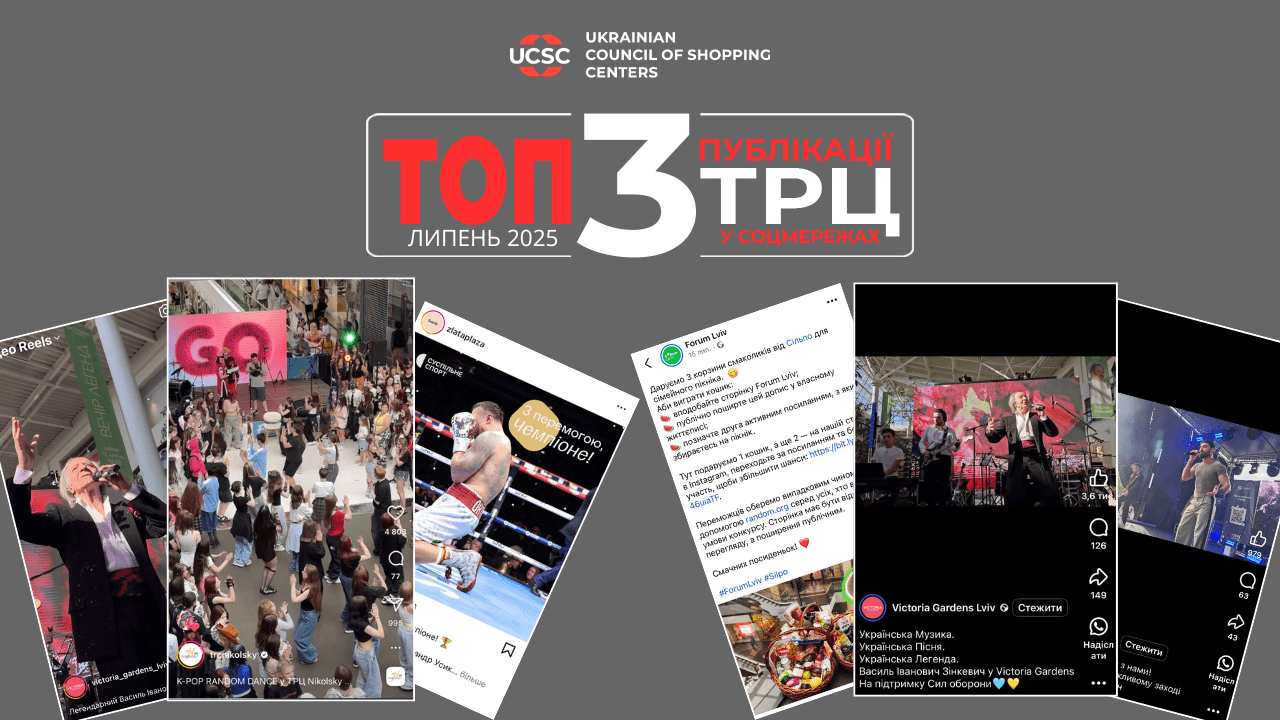 Українська Рада Торгових Центрів представляє щомісячний рейтинг “ТОП публікацій ТРЦ у соцмережах” за липень 2025 року.