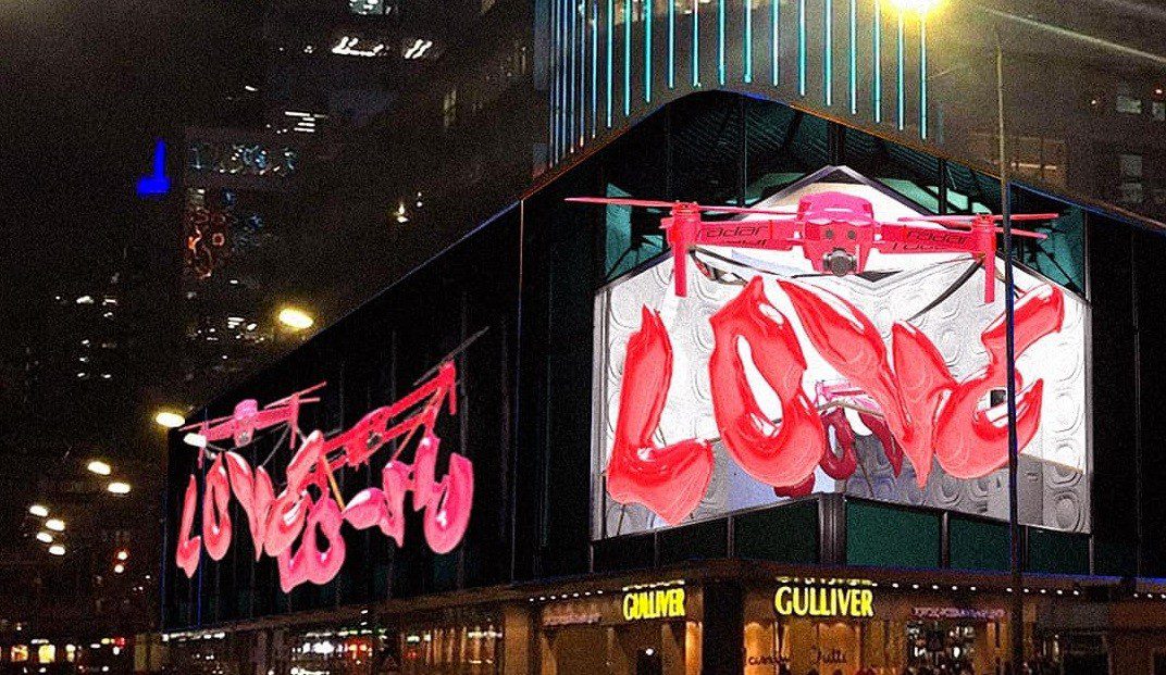 3D шоу супроводжуватиметься яскравими кольорами та незвичайними формами фігур, коптерами з надувними кульками LOVE та скульптурою купідону Ероса.
