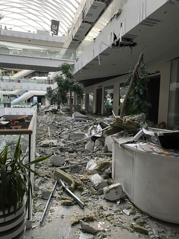 Наслідками влучання стали: значні пошкодження куполу, фасаду, було пошкоджено майже половину кліматичного та вентиляційного обладнання, пошкоджені скляні конструкції на фасаді та мультимедійні фасадні екрани. Також ТРЦ зазнав значних пошкоджень всередині – практично знищені скляні огородження атріуму, багато вітрин, оздоблення 2-4 поверху, мультимедійні екрани, елементи декору.