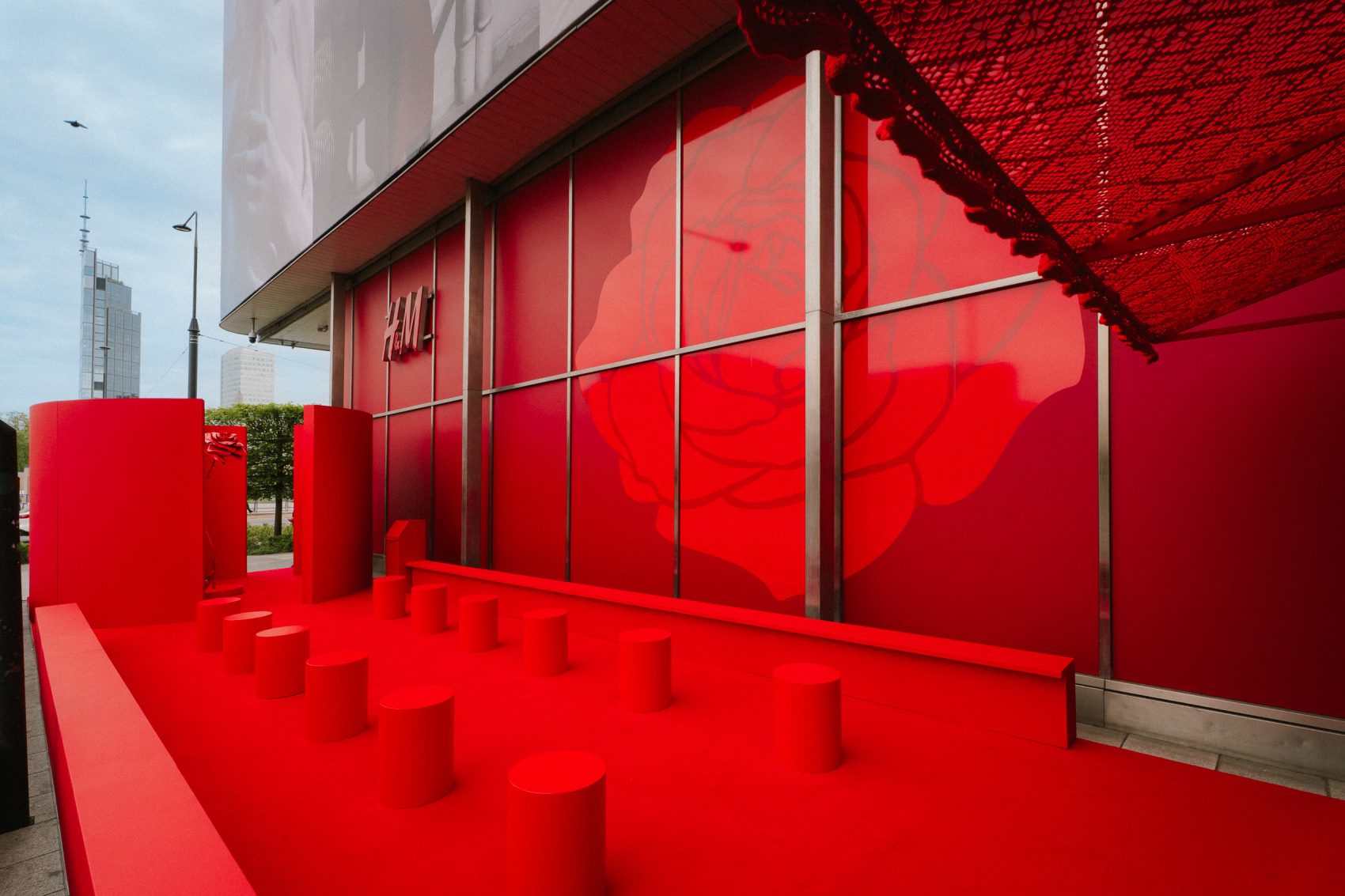 Це простір, за їхніми словами, що можна пройти, відчути, відкрити для себе. Червоний – колір H&M – надає інтенсивності, спрямованості та драматизму цій інсталяції.