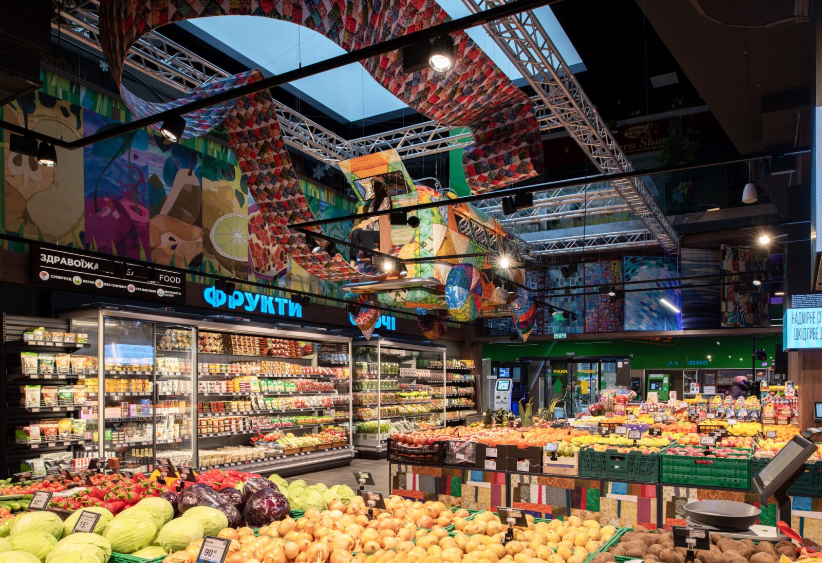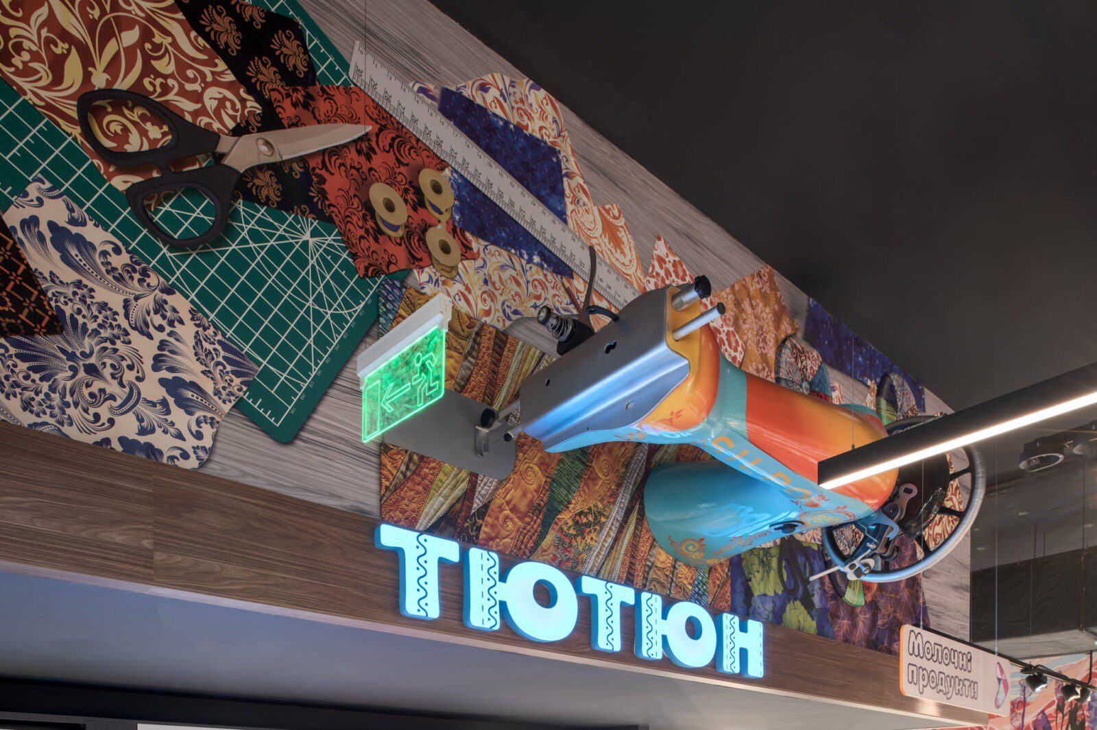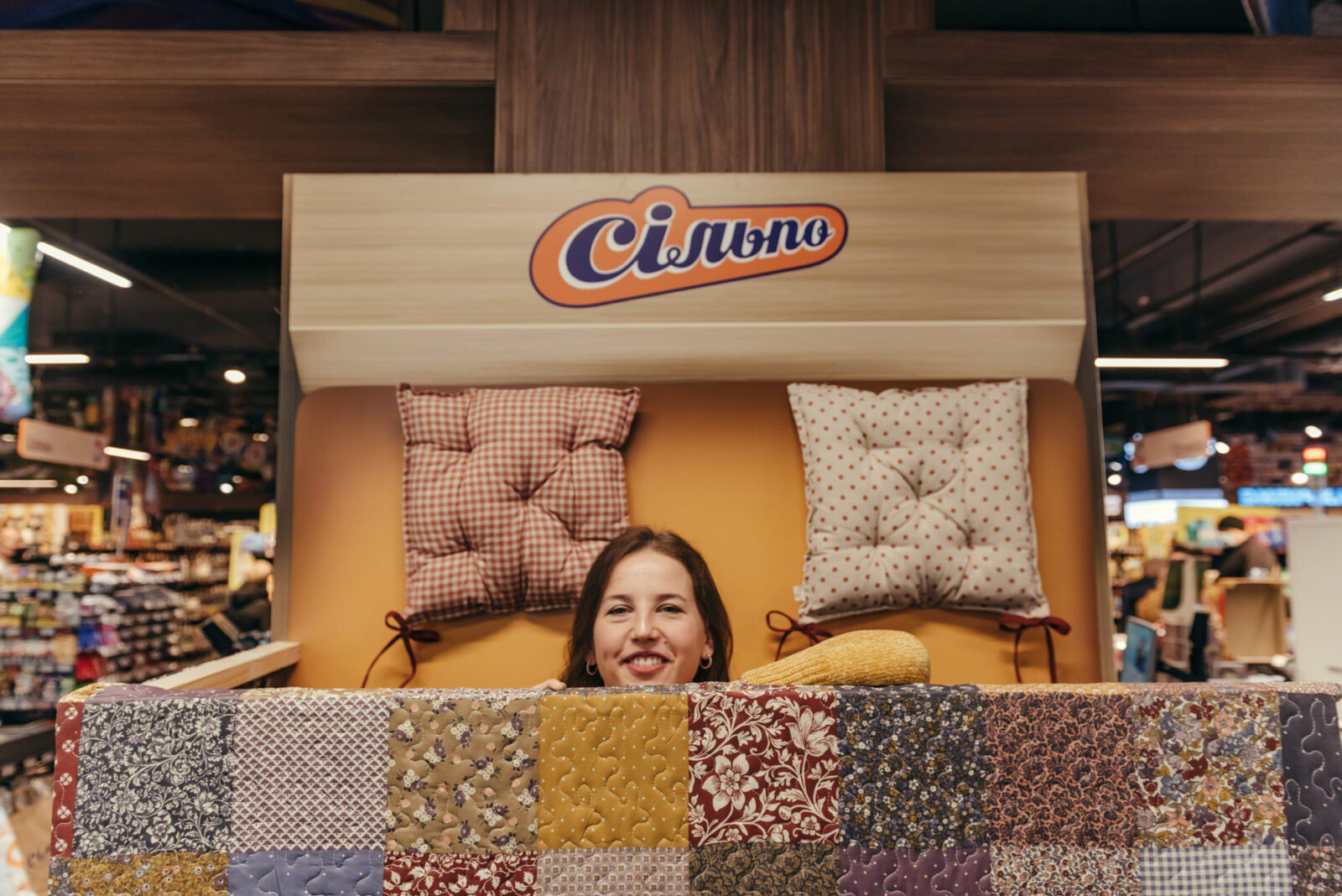 Тематикою оформлення нового супермаркету стало клаптикове шиття, а саме квілт. Інтер’єр створений з великою кількістю клаптевих подушок і ковдр з теплим наповнювачем, виконаним у цій техніці.