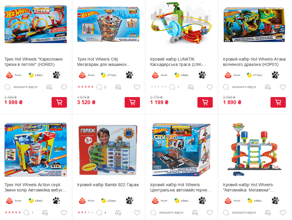 - сюжетно-рольові ігрові набори – в 2,5 раза;