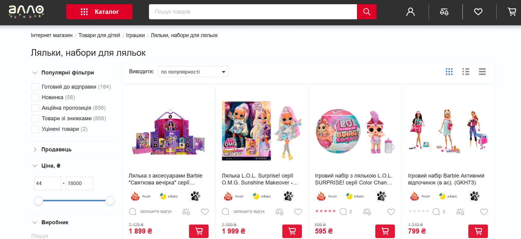 Напередодні Різдва та Нового року українці активно купують подарунки дітям, попитом користуються сюжетно-рольові набори, товари для хобі та творчості, конструктори, настільні ігри, ляльки та іграшковий транспорт.