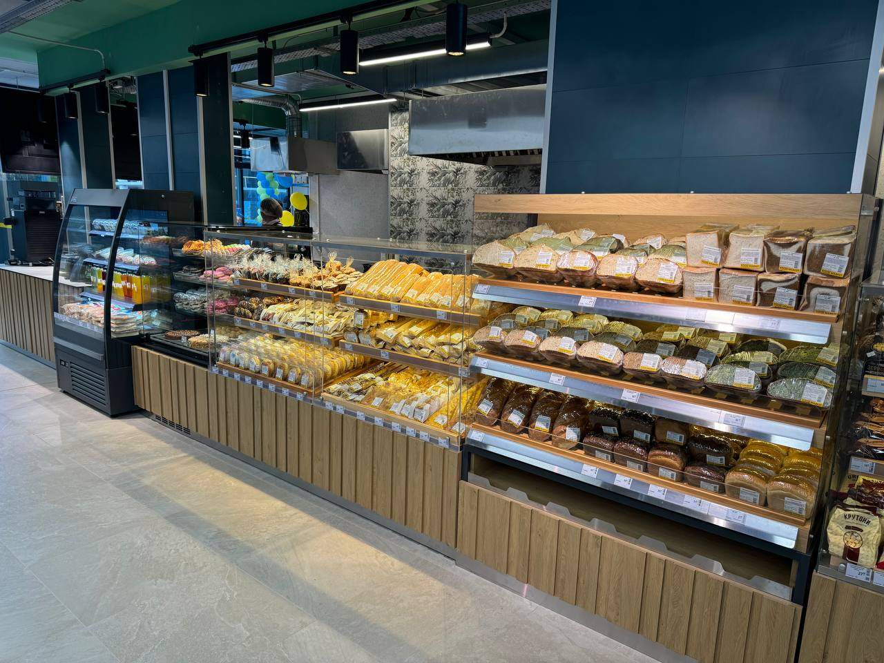 Магазин розмістився на першому поверсі ТЦ та зайняв площу 835 кв. м, а його товарна пропозиція налічує до 15 тис. артикулів.